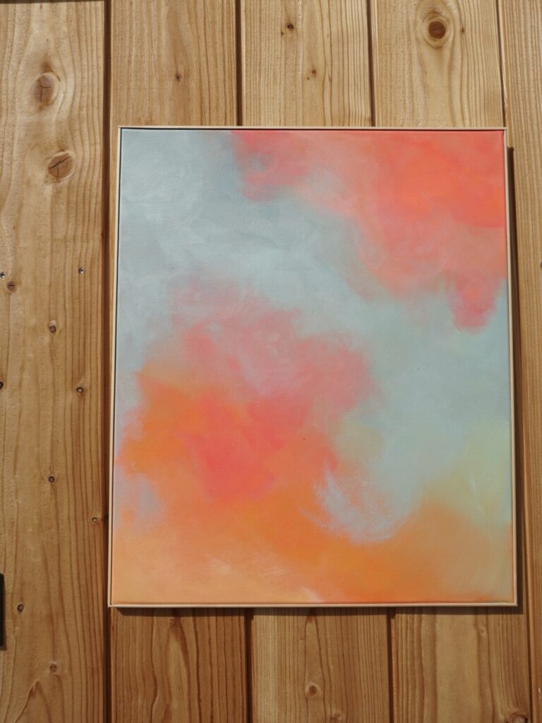 Acrylic on canvas, wooden frame. Ready to hang.