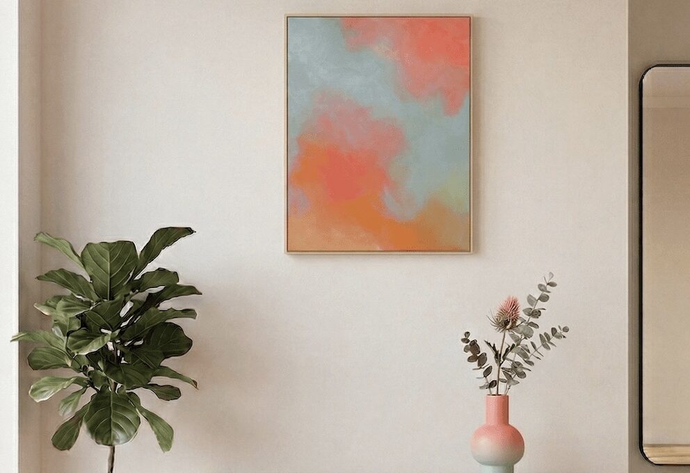 Acrylic on canvas, wooden frame. Ready to hang.