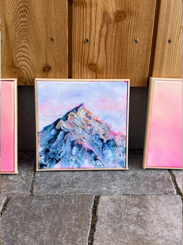 Acrylic on canvas, wooden frame. Ready to hang.